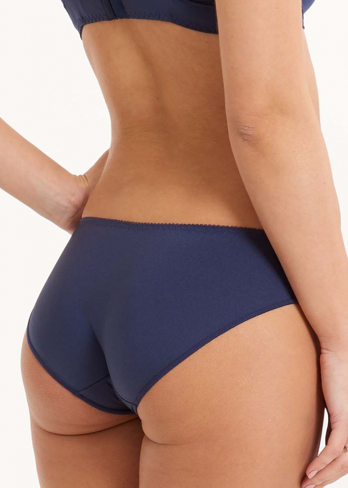 Daily Lace trosa, en vacker underdel med exklusiv spets. Detta är en blå trosa med heltäckande tyg fram och bak samt en exklusiv spets på sidan av trosan.
